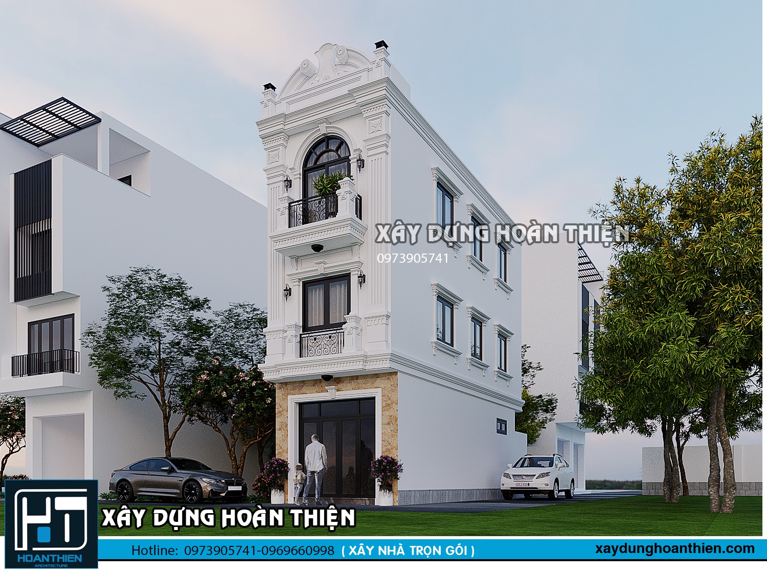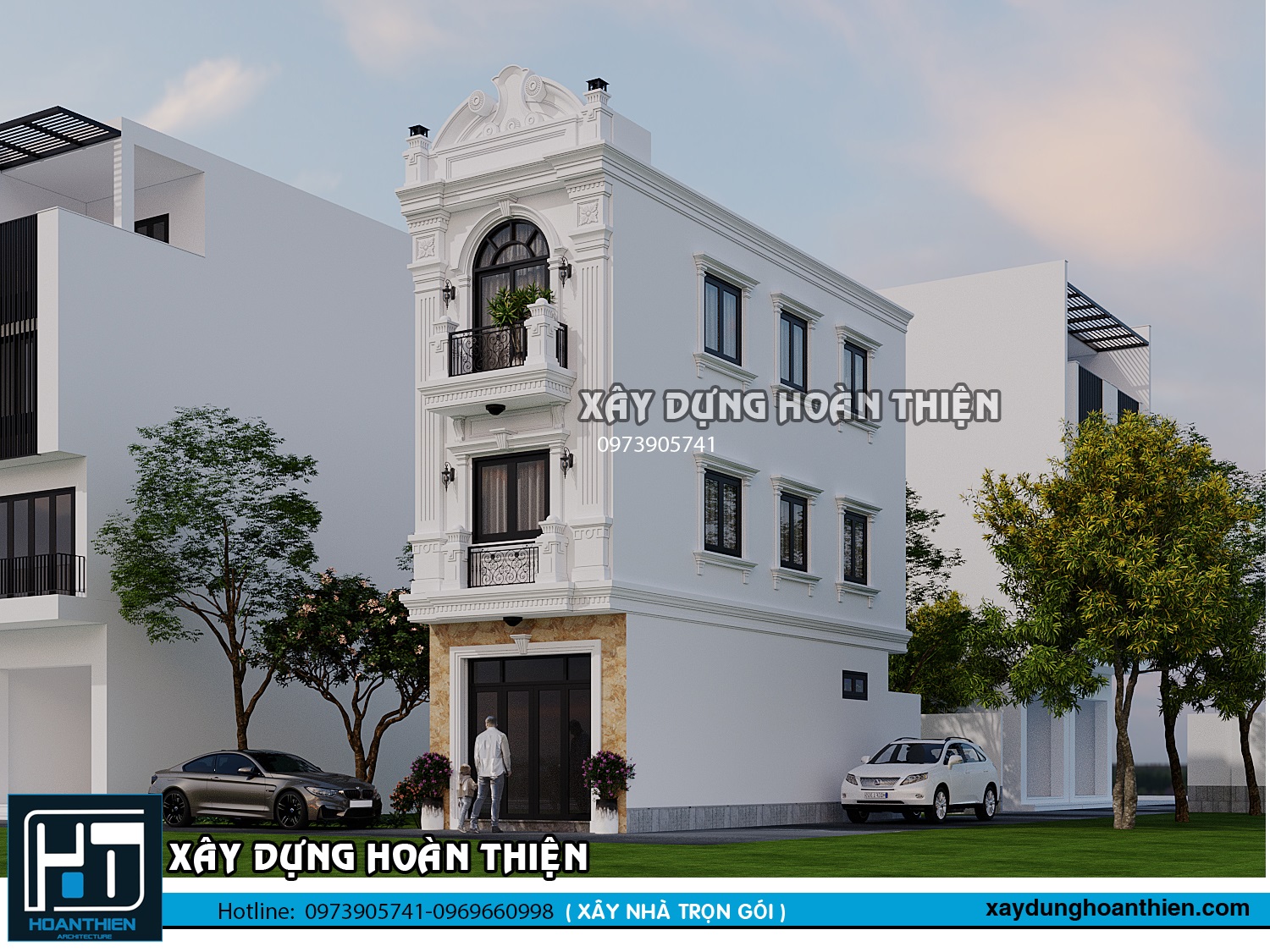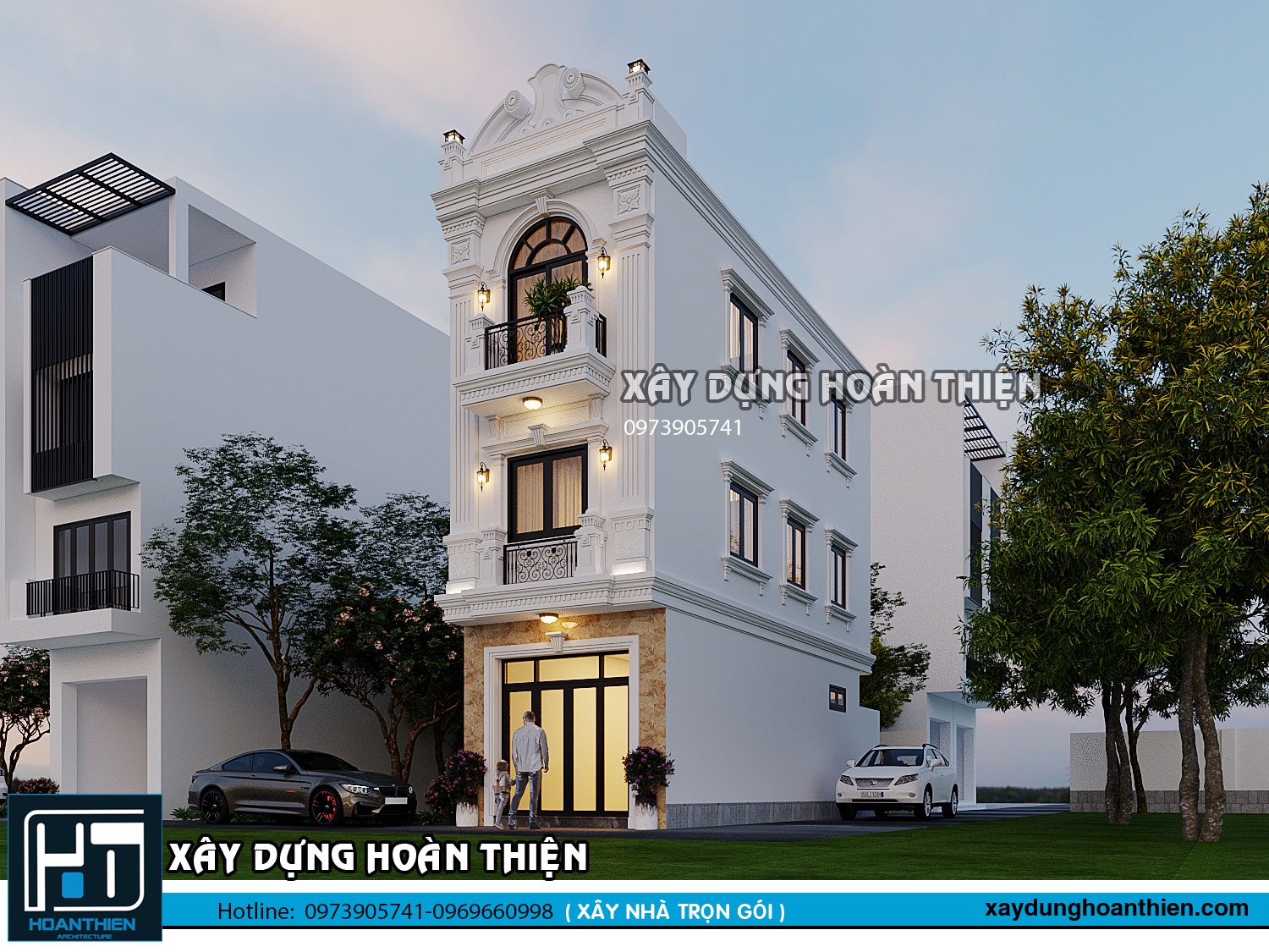 Mẫu nhà ống tân cổ điển 3 tầng 2 mặt tiền thanh thoát, sang trọng