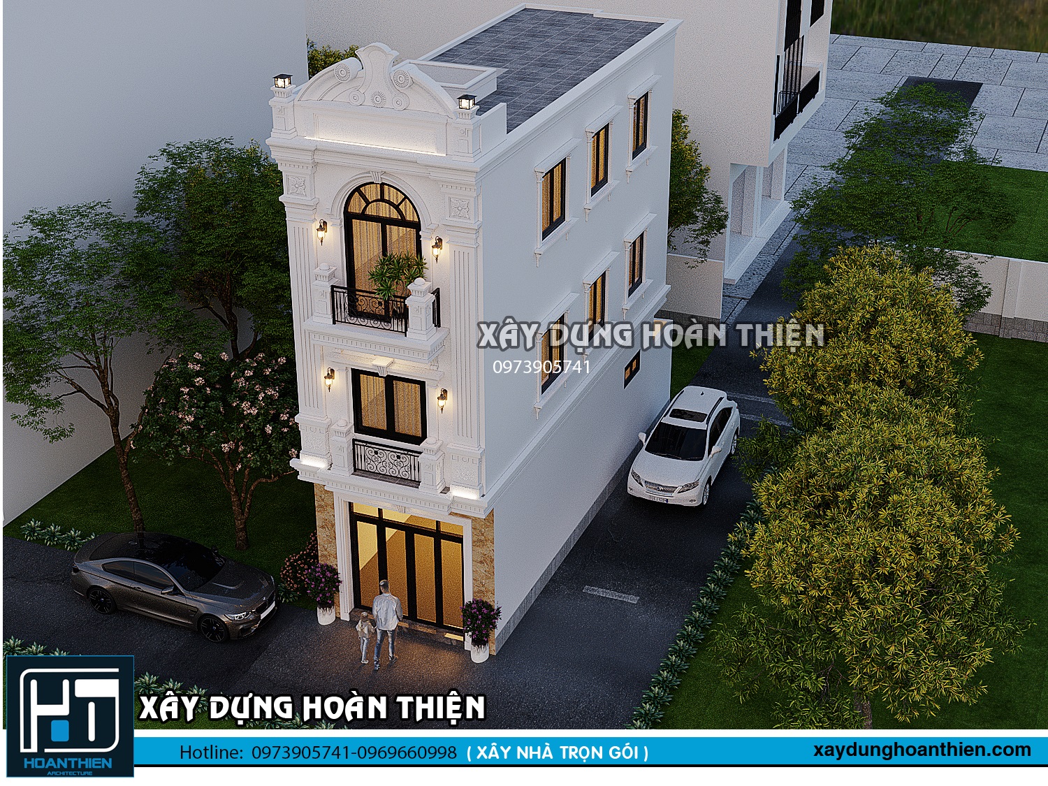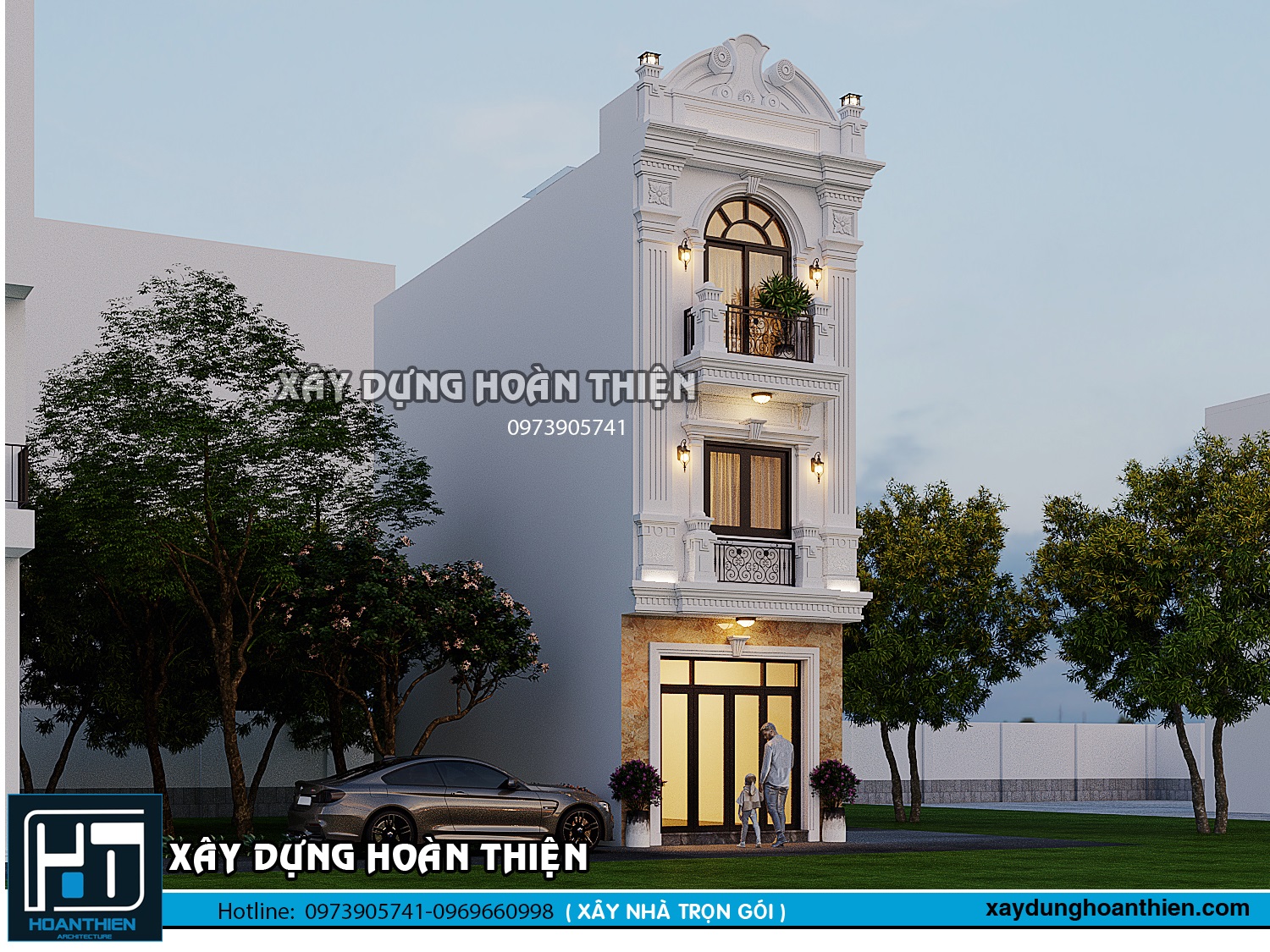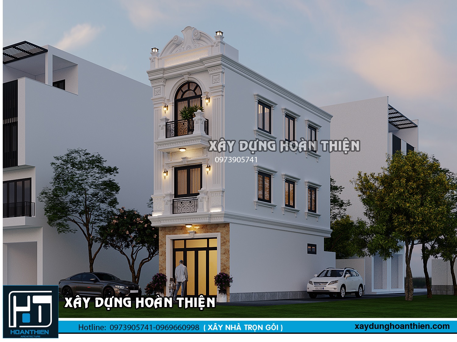 Mẫu nhà ống tân cổ điển 3 tầng 2 mặt tiền thanh thoát, sang trọng