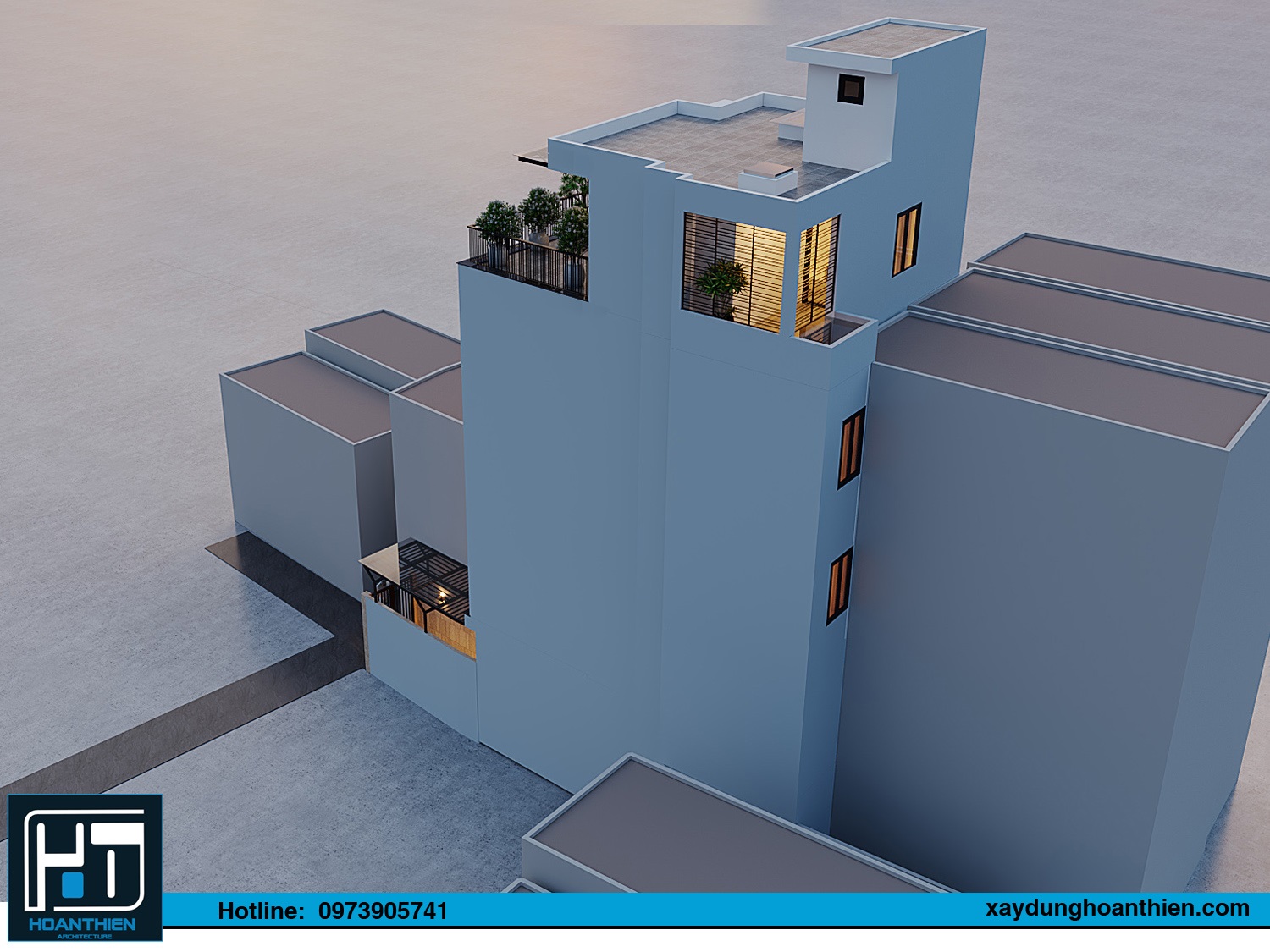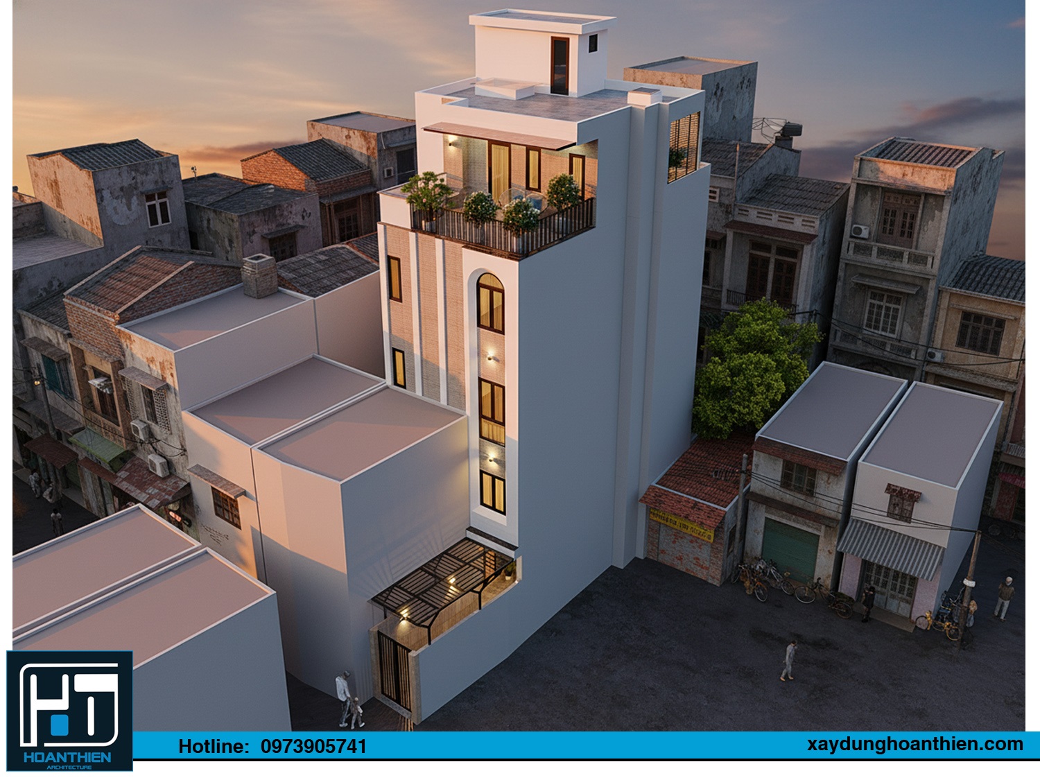 Một phương án phổ biến cho thiết kế nhà ống 5 tầng:
